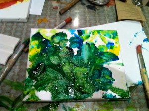 You won’t often hear me say that a weekend trip downtown with a toddler in the subway is worth it. But this one was – and we now have a brightly-colored canvas made by our 1.5 year old son to prove it.