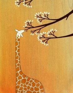 Last year, as I made my way through the chaos that is Manhattan’s Union Square, I had to stop when I saw a stand with what I think is some of the sweetest, coolest and kid-friendliest art out there. Seeing my reaction, my best friend bought me a print of this giraffe: